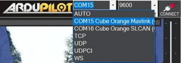 Select the COM port that says “Cube Mavlink” in the name. See Figure 1 below.