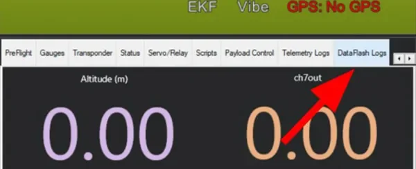 On the left side of the screen, there is a menu that has tabs for “Quick”, “Actions”, “Messages”, etc… Scroll to the right to find the tab that says “DataFlash Logs”. See Figure 2 below.