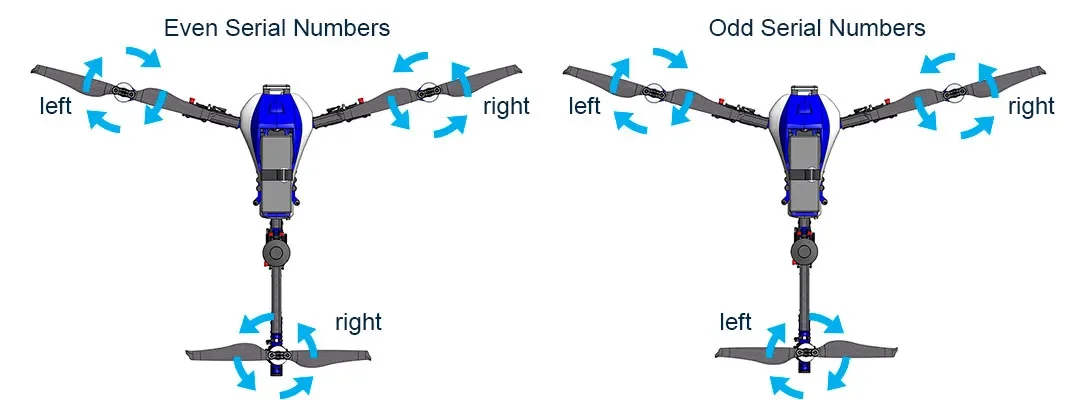 Even serial numbers will have a right tail rotor. Odd serial numbers will have a left tail rotor.
